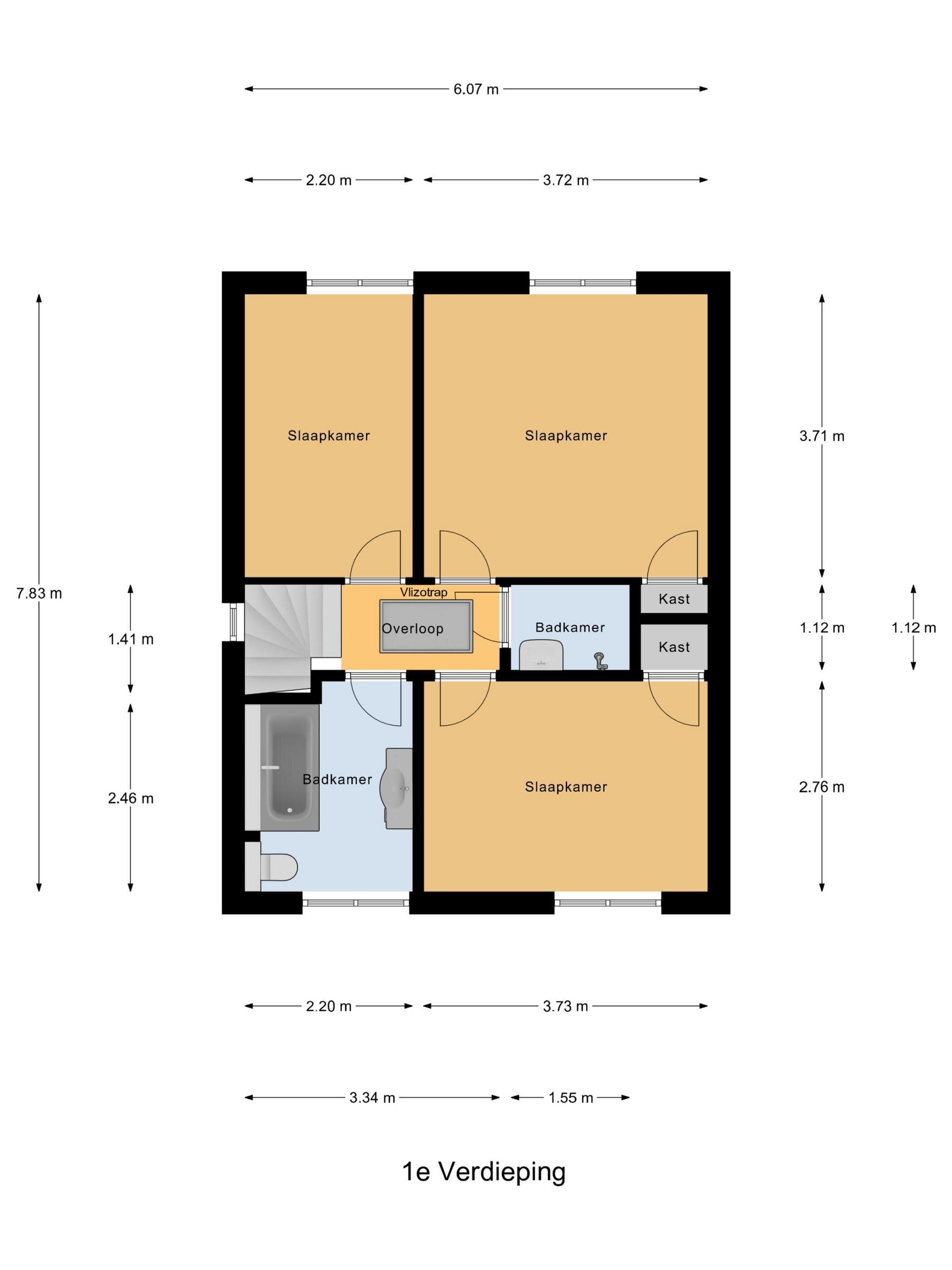 - 2 badkamers en 1 apart toilet